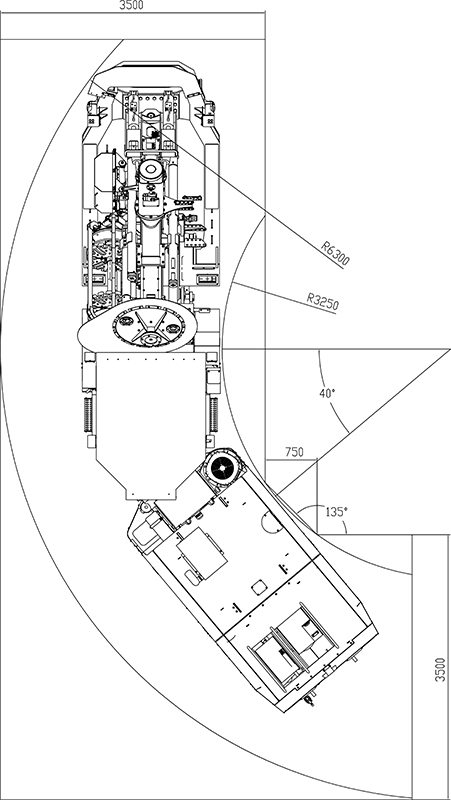 | HT71(CYTC76A) | أدنى نصف قطر للدوران | الداخلي 3250 مم/ الخارجي 6300 مم | |